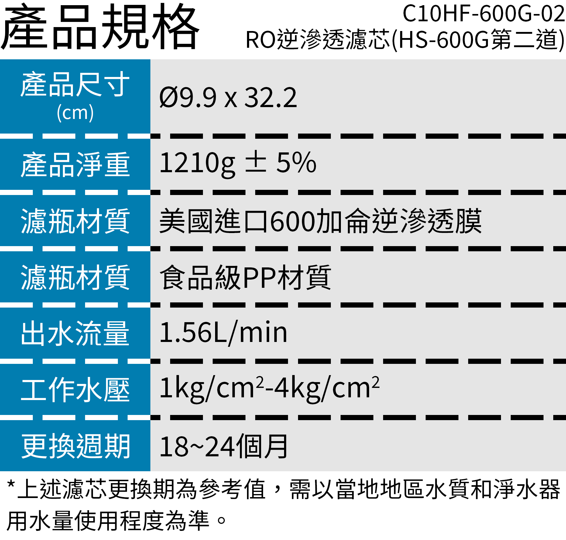 KitchenPro廚事寶 C10HF-600G-02 RO逆滲透濾芯(HS-600G第二道/18~24個月)