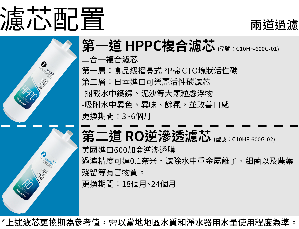 KitchenPro廚事寶 C10HF-600G-01 HPPC複合濾芯(HS-600G第一道/3~6個月)