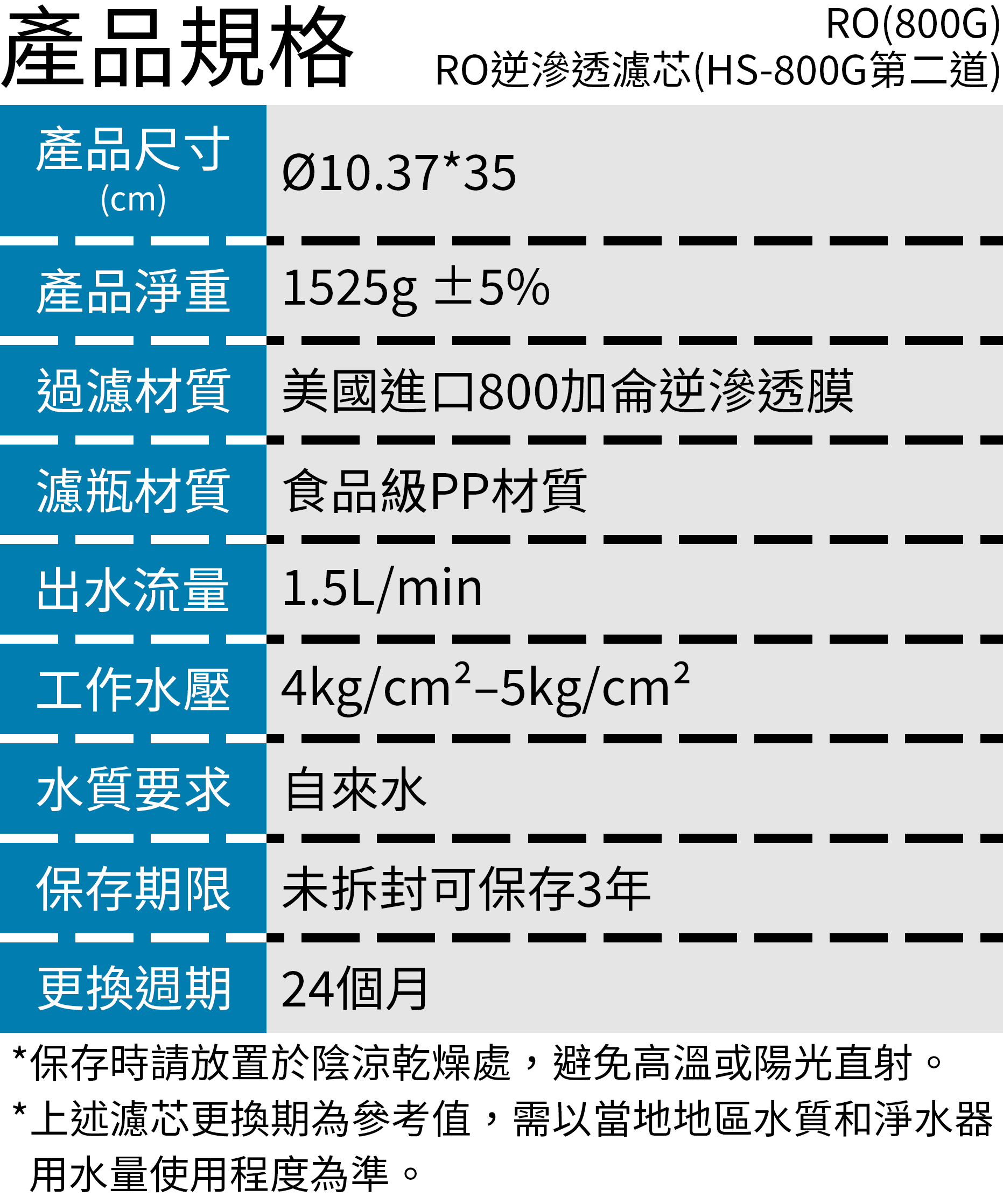 KitchenPro廚事寶 RO(800G) RO逆滲透濾芯(HS-800G第二道/24個月)