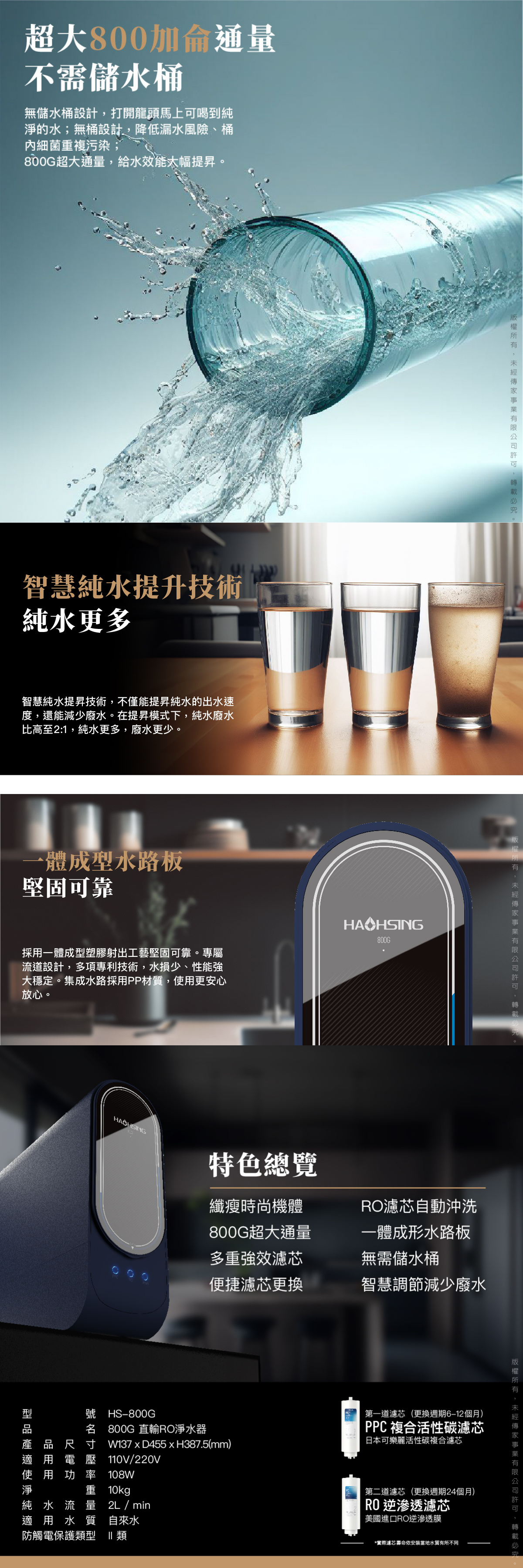 Haohsing豪星 HS-400G 櫥下型直輸RO淨水器