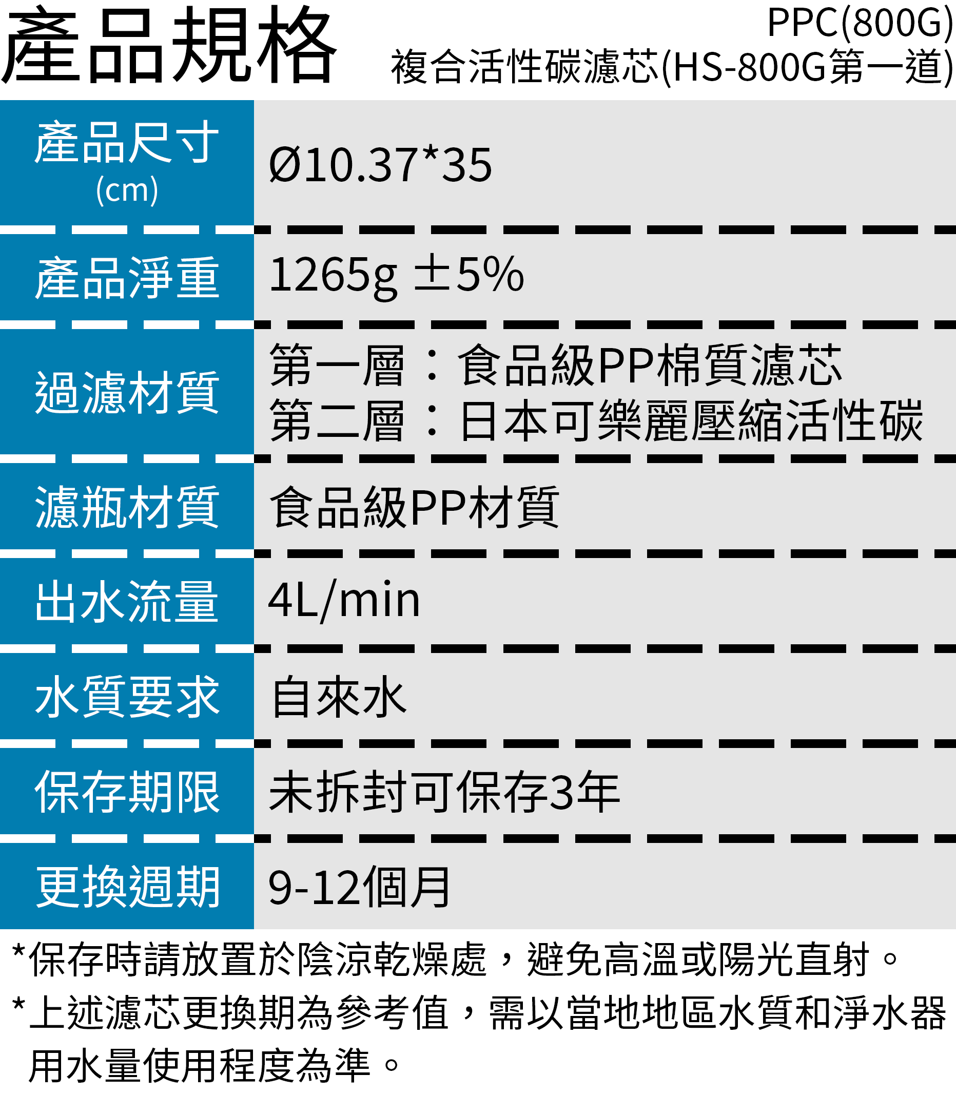 KitchenPro廚事寶 PPC(800G) 複合活性碳濾芯(HS-800G第一道/9~12個月)