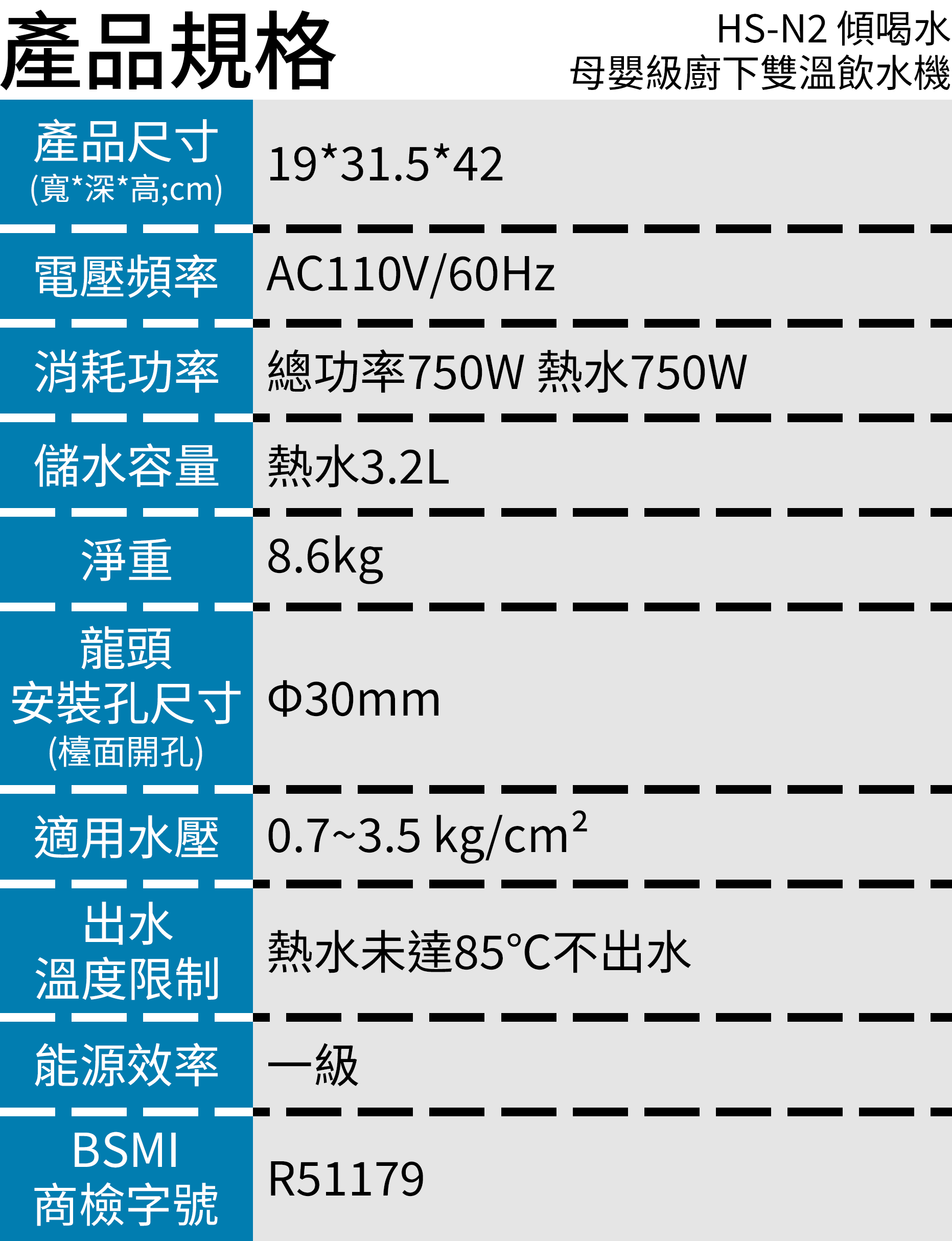 KitchenPro廚事寶 HS-N2 傾喝水 母嬰級廚下雙溫飲水機