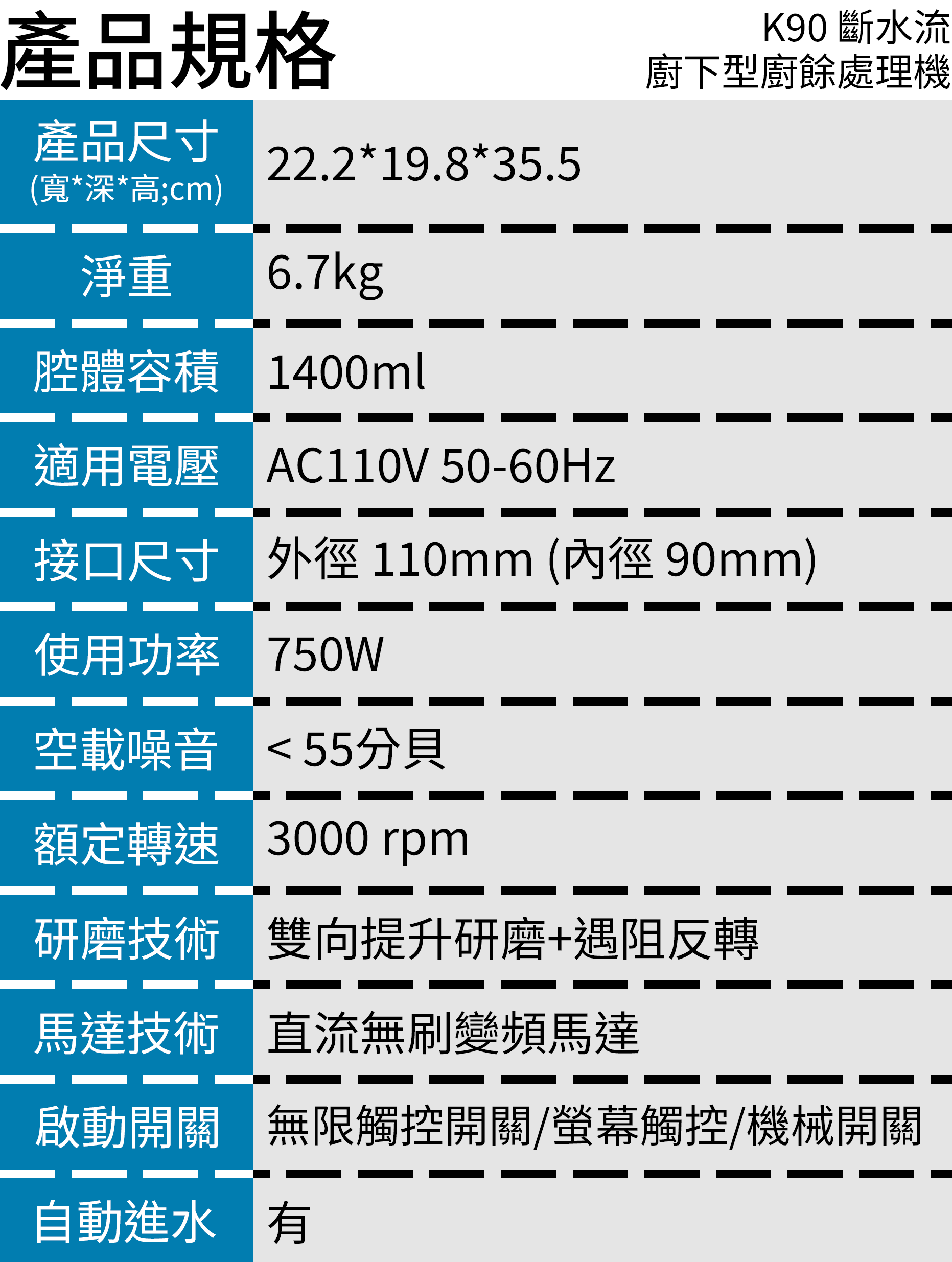 KitchenPro廚事寶 K90 斷水流廚下型廚餘處理機