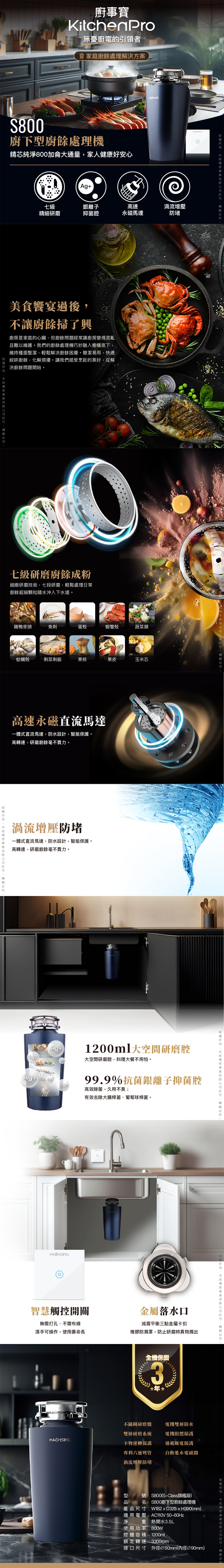 KitchenPro廚事寶 S800 廚下型廚餘處理機