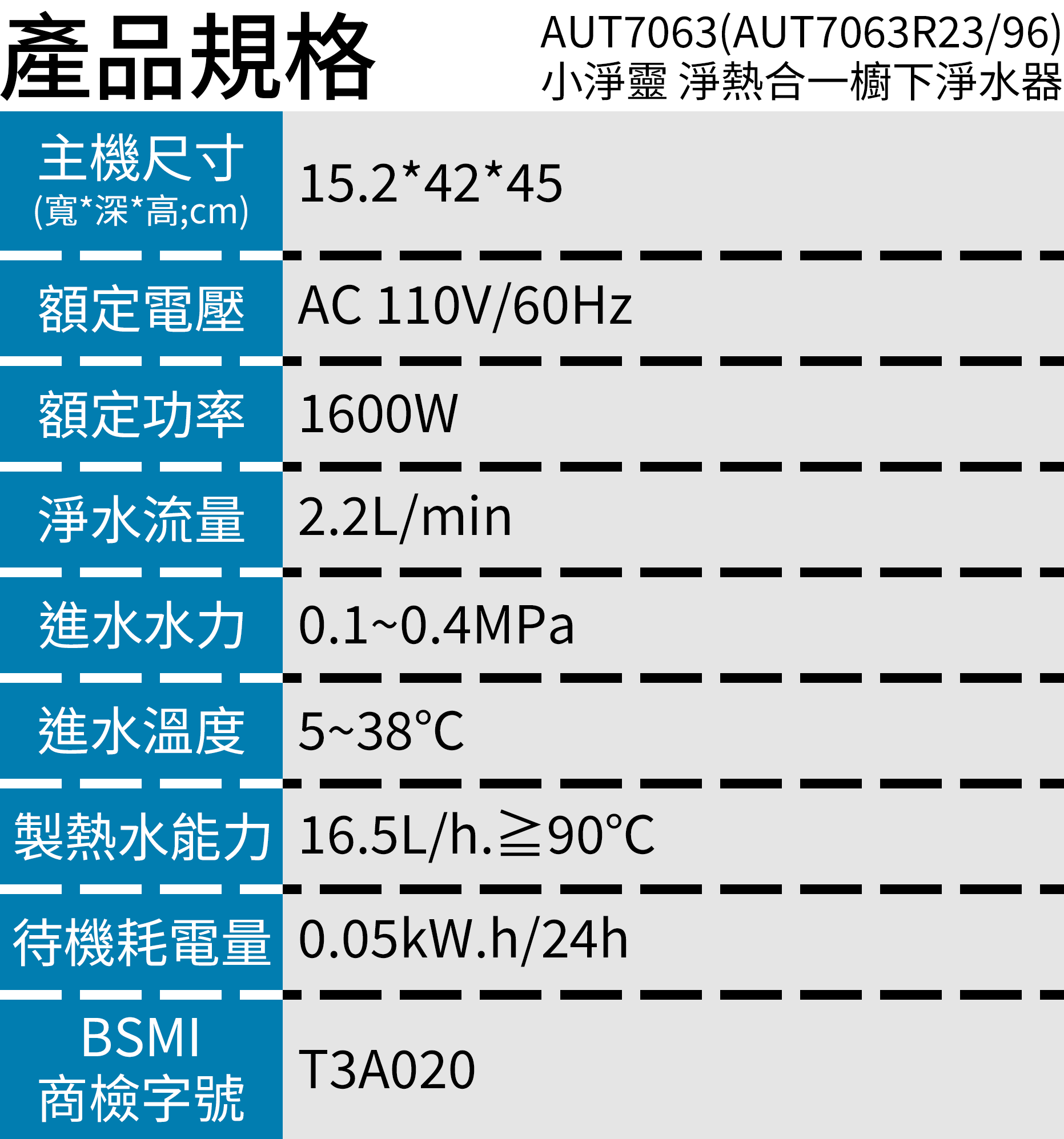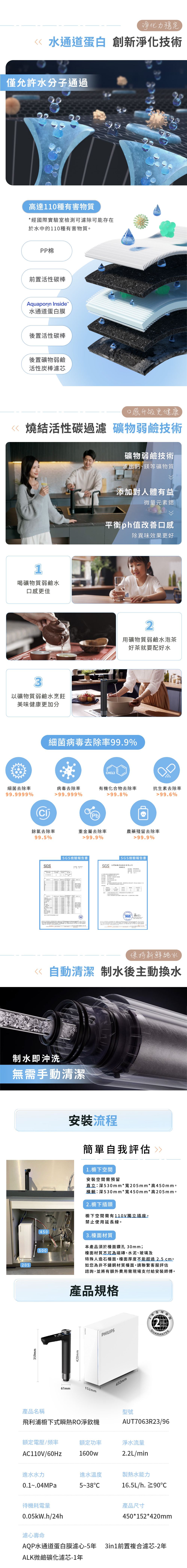 Philips飛利浦 AUT7063 小淨靈 淨熱合一櫥下淨水器