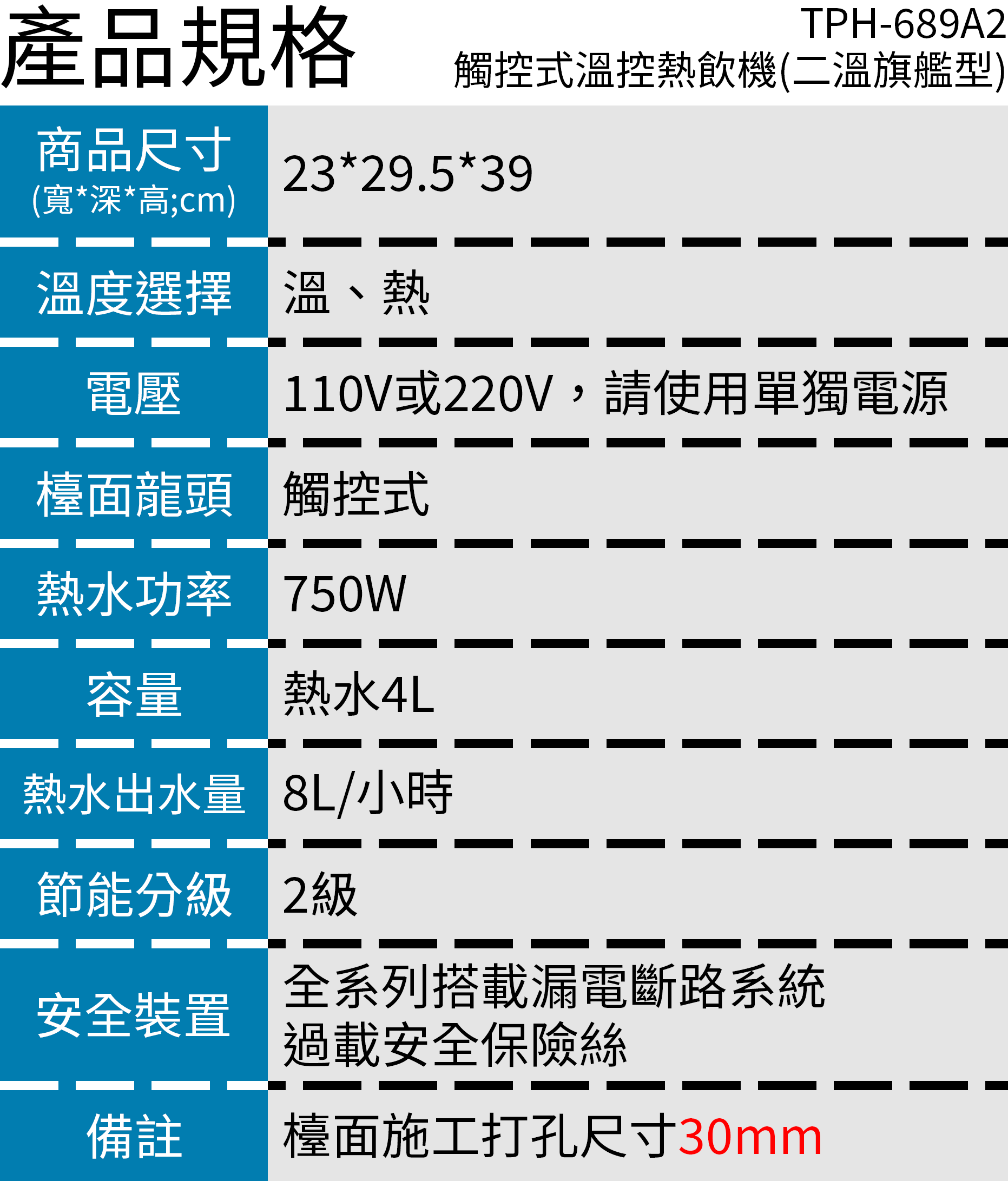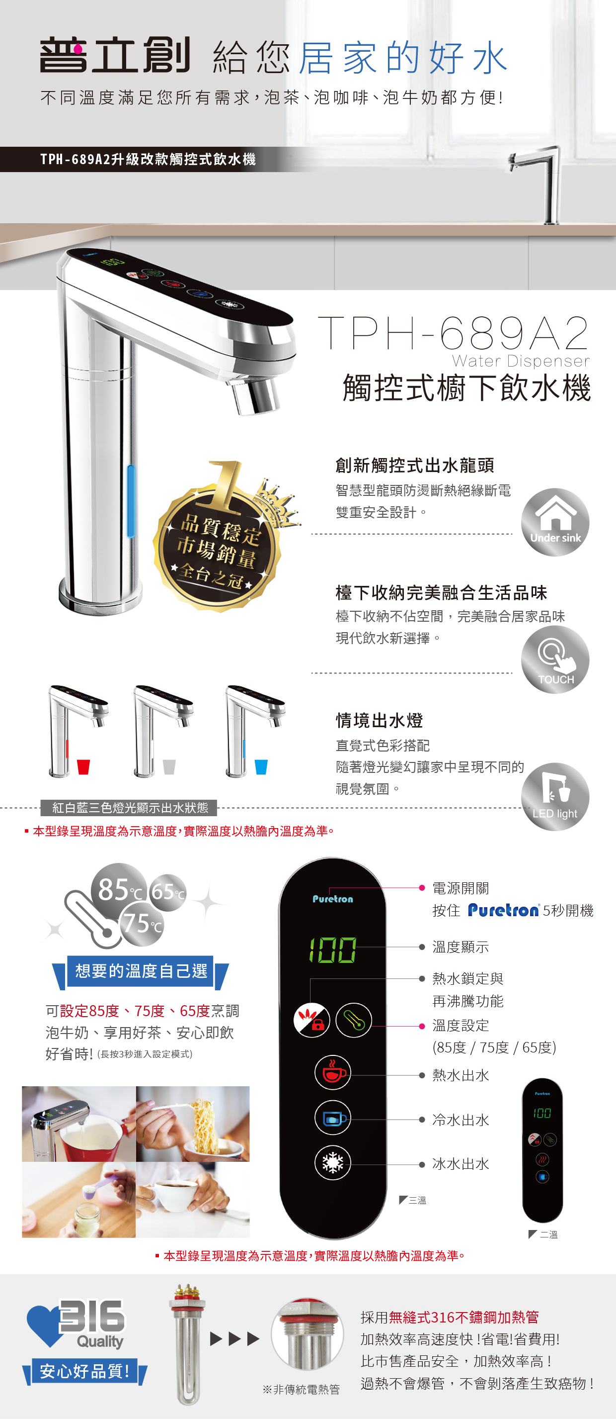 Puretron普立創 TPH-689A2 觸控式溫控熱飲機(二溫旗艦型)