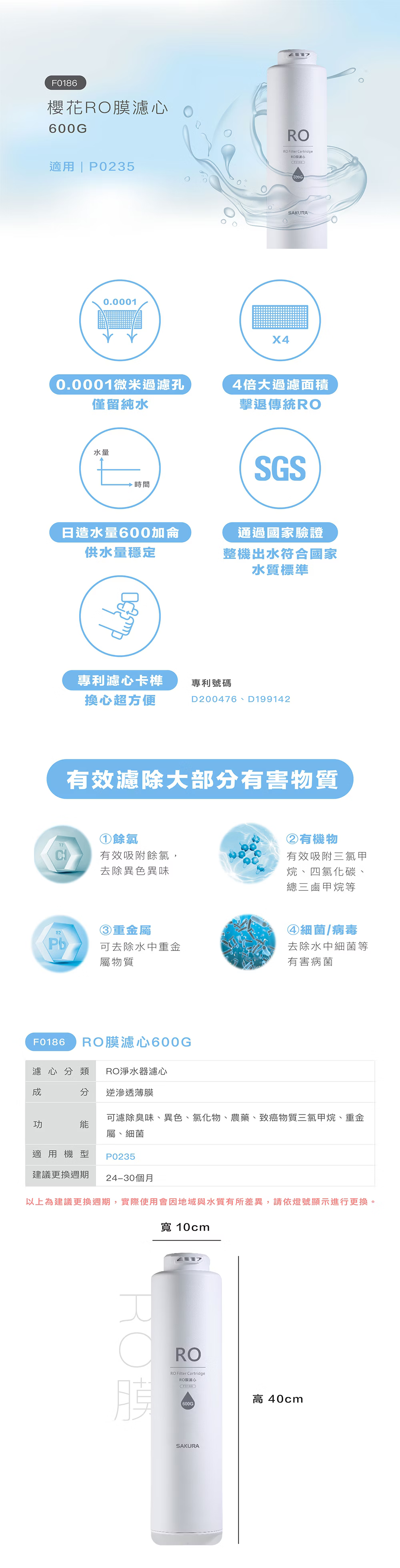 SakuraWater櫻花淨水 F0186 RO膜濾芯 600G
