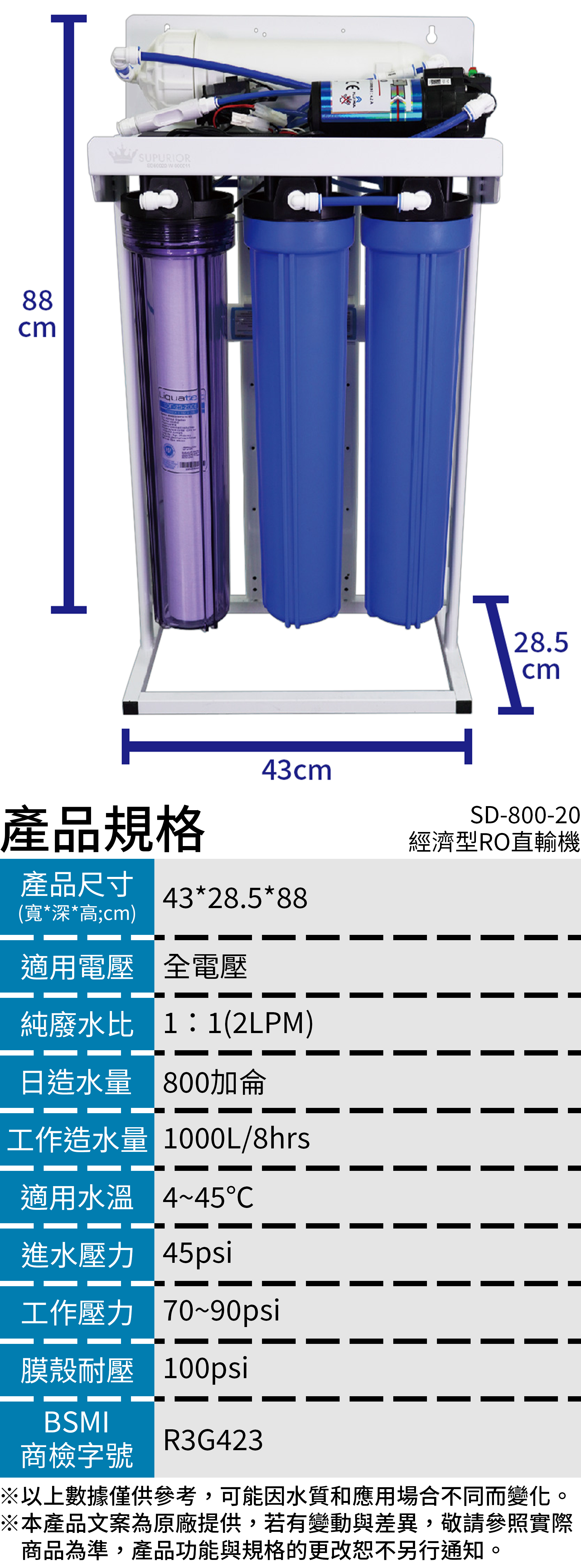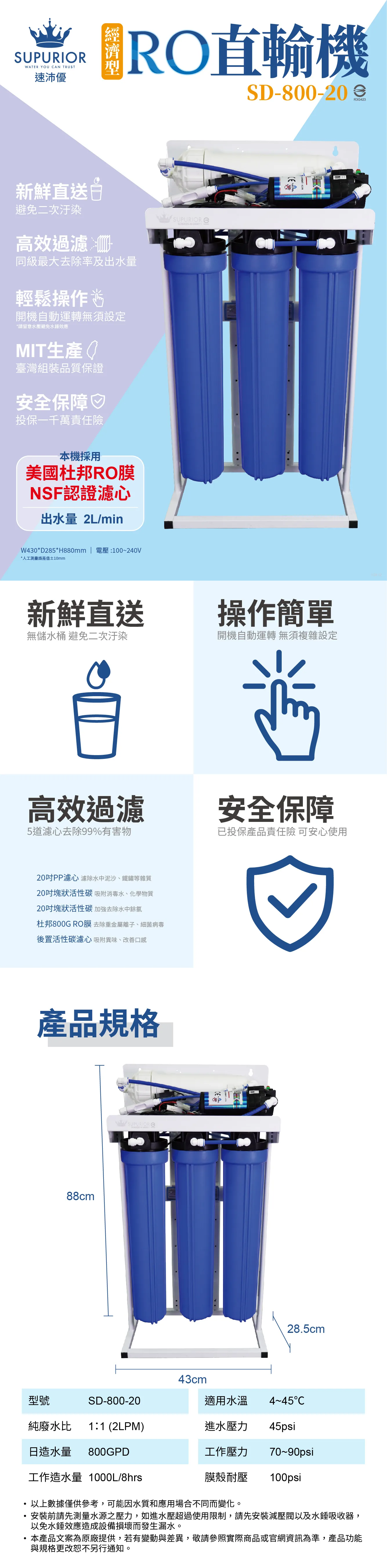 Supurior速沛優 SD-800-20 經濟型RO直輸機