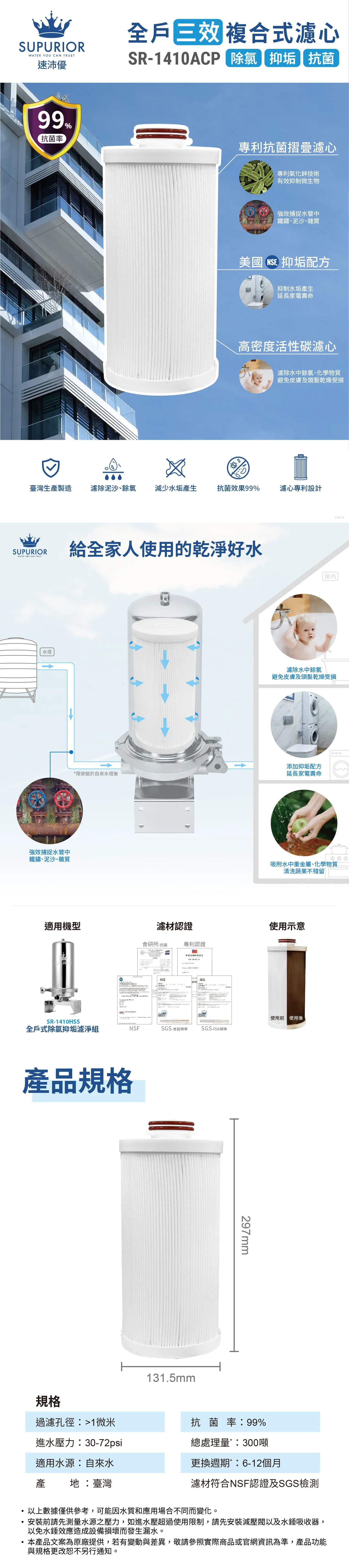 Supurior速沛優 SR-1410ACP 全戶型三效複合式濾芯