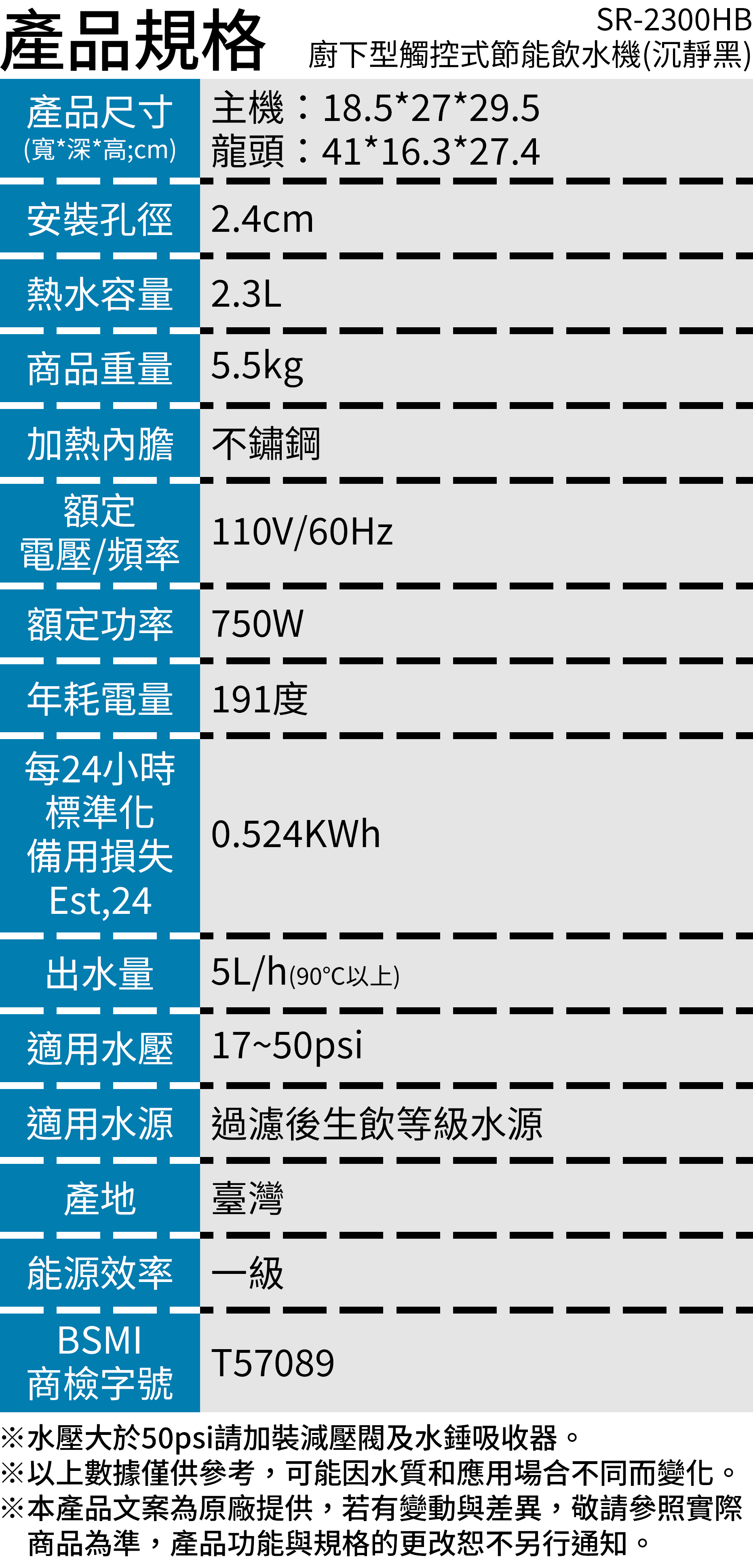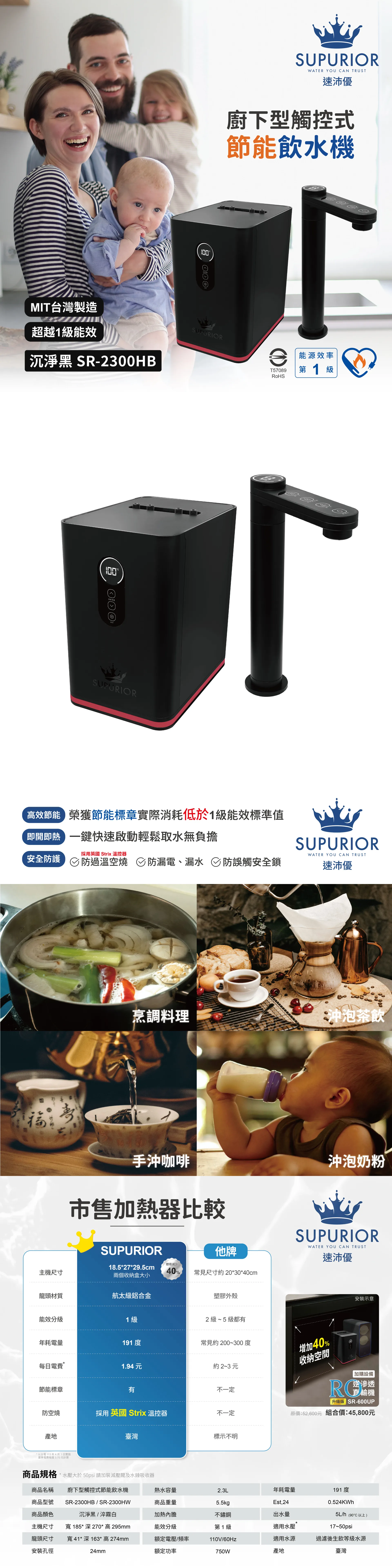 Supurior速沛優 SR-2300HB 廚下型觸控式節能飲水機(沉靜黑)