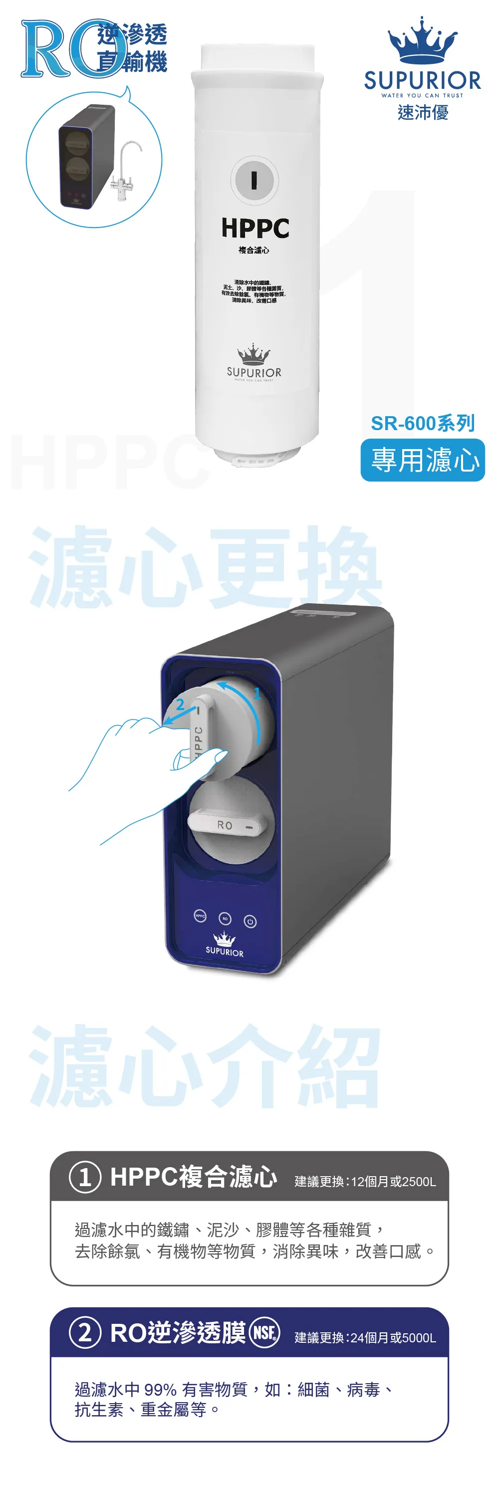 Supurior速沛優 SR-600G-H002 RO逆滲透膜 (SR-600 系列 第二道/二年)