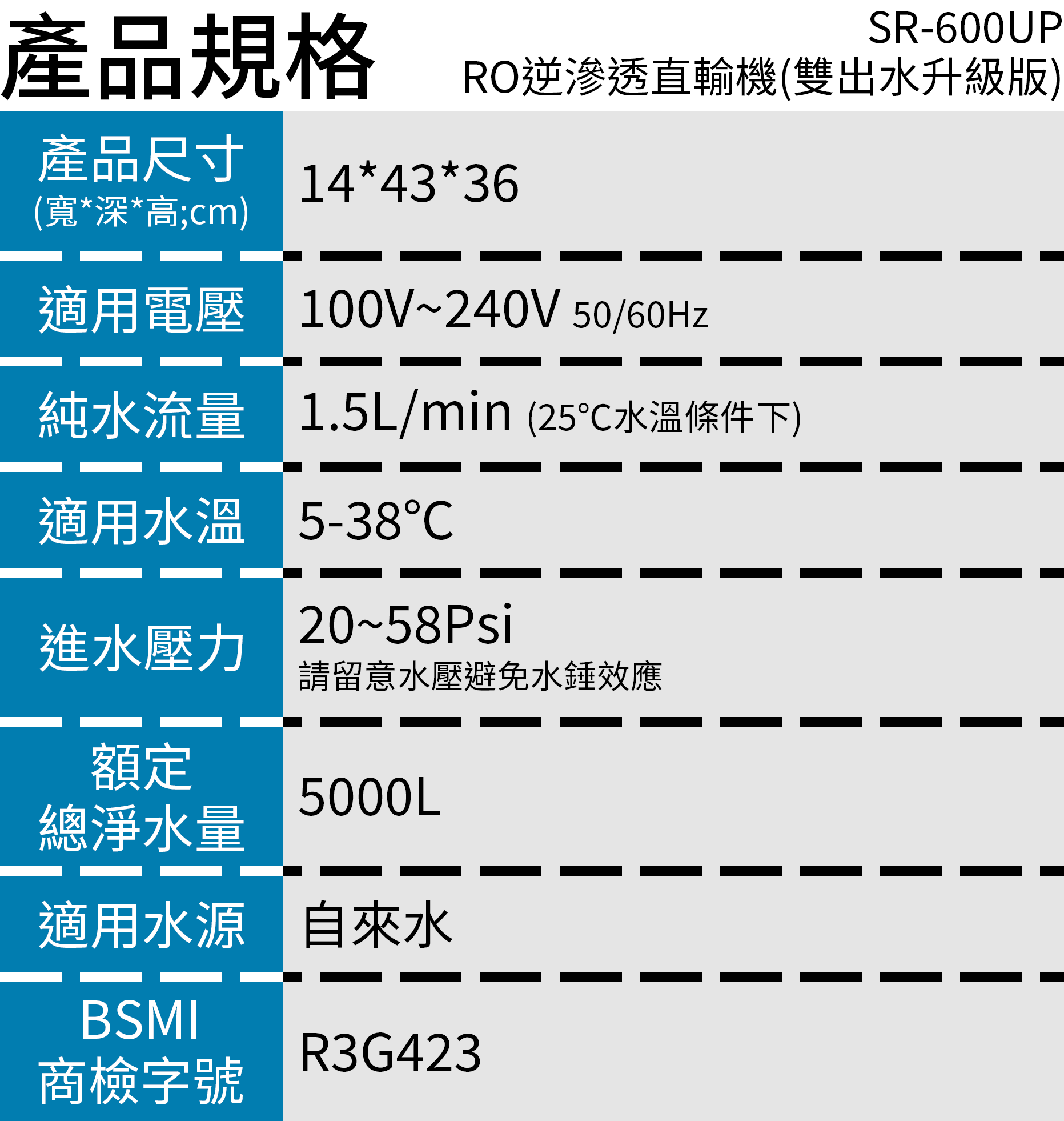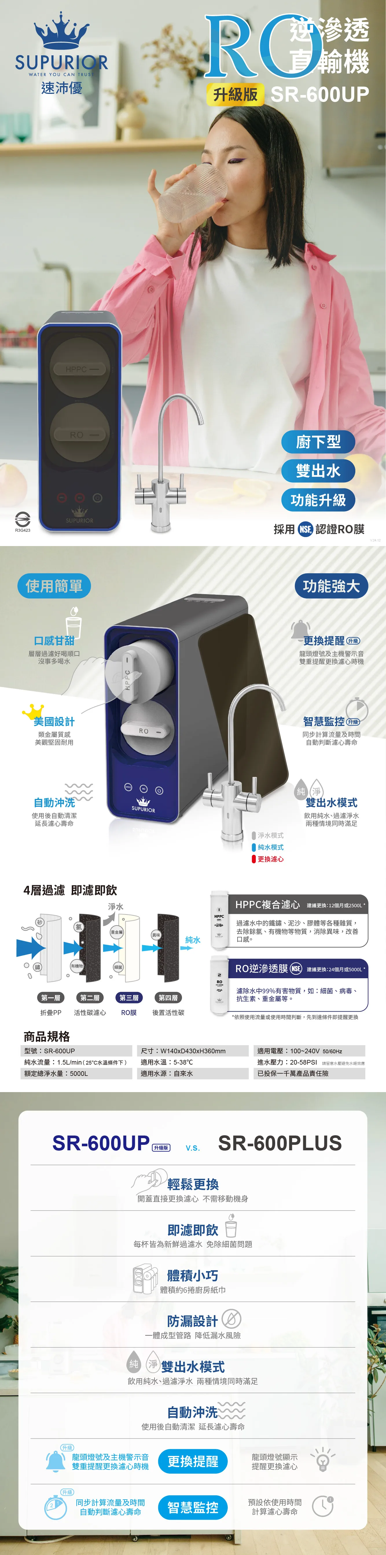 Supurior速沛優 SR-600UP RO逆滲透直輸機(雙出水升級版)