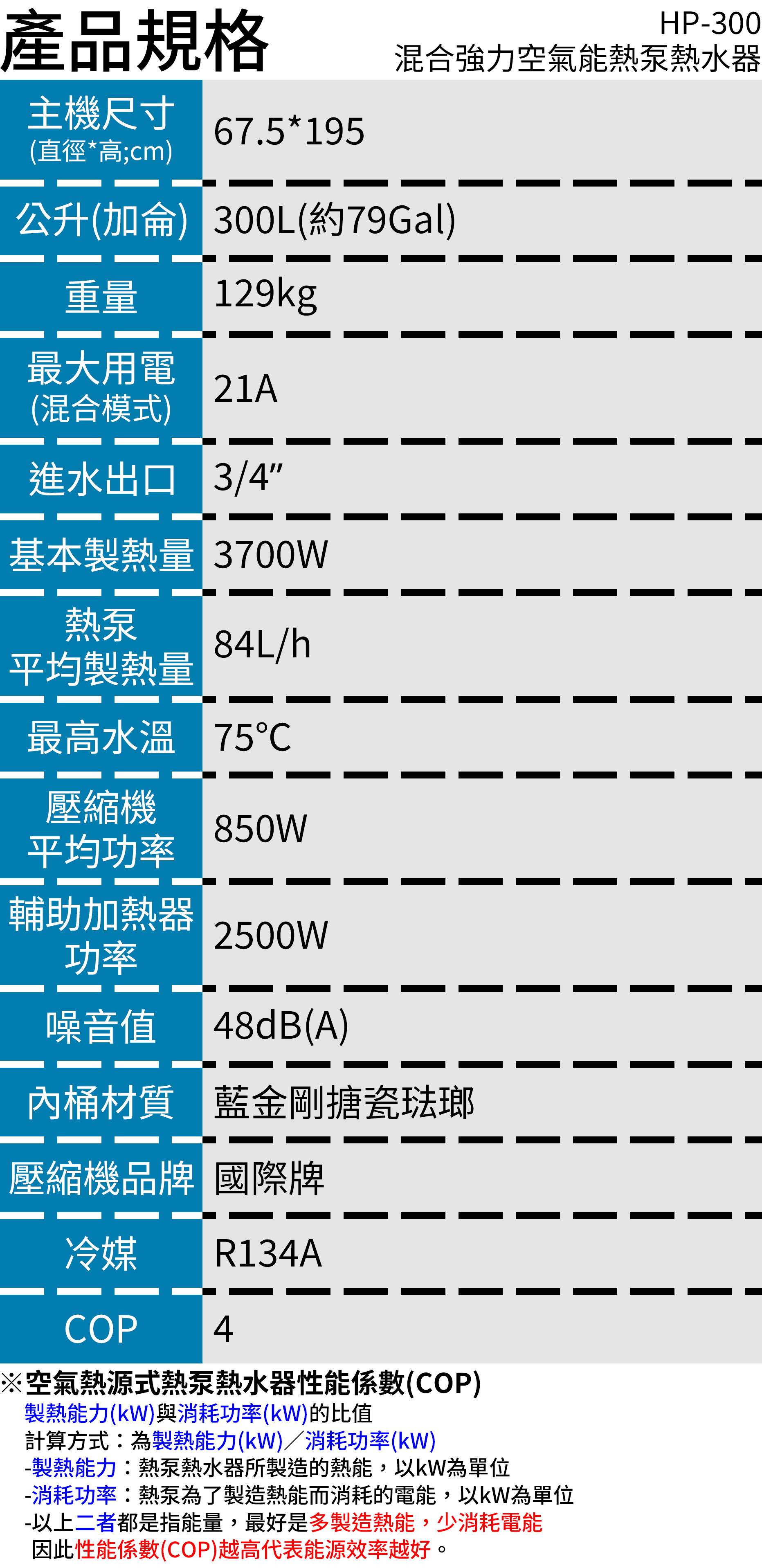 TAADA多田 混合強力空氣能熱泵熱水器 HP-300 300公升 -落地循環式熱泵