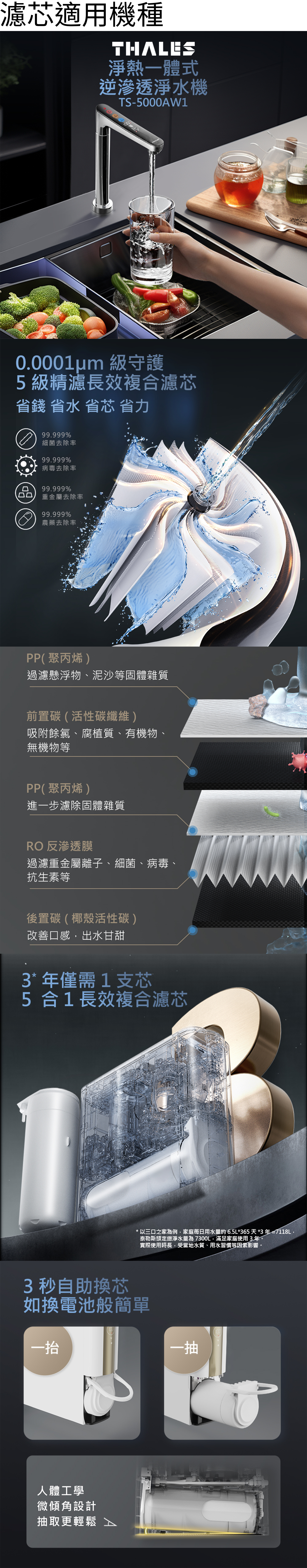 Thales泰勒斯 TS-5000AW1用 長效複合濾芯(TS-5000AW1專用/僅一道/3年)