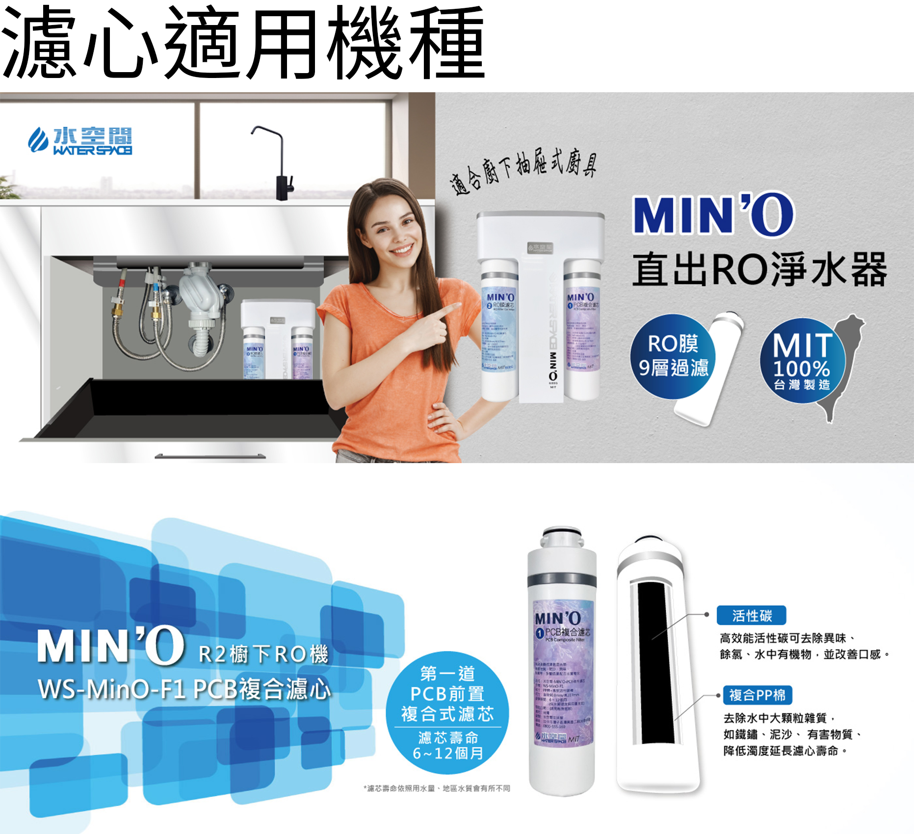 Water Space水空間 WS-MinO-F1 PCB複合濾芯(WS-Min'O-R2專用/第一道/6個月~12個月)