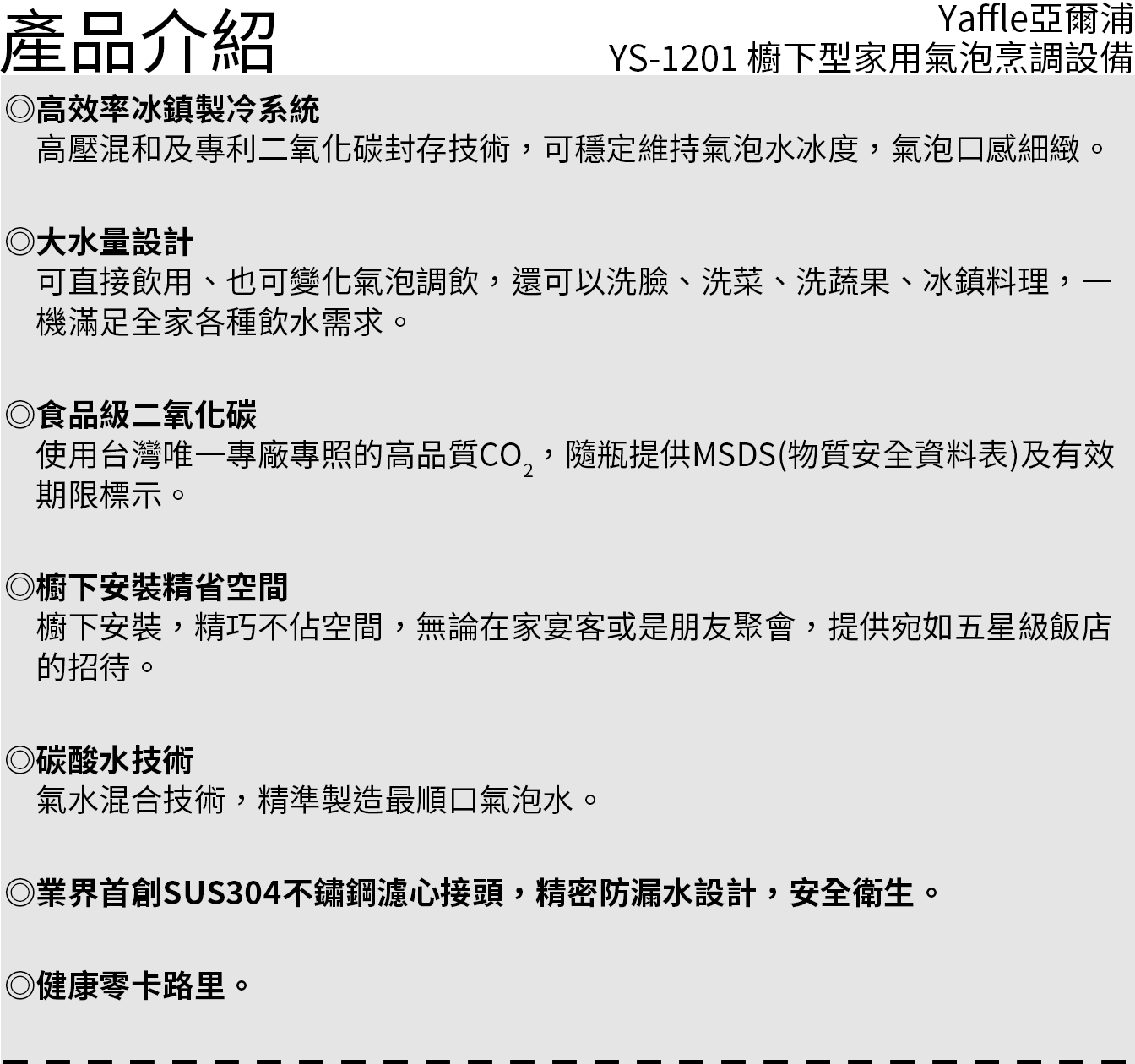 Yaffle亞爾浦 YS-1101 櫥下型家用氣泡水機