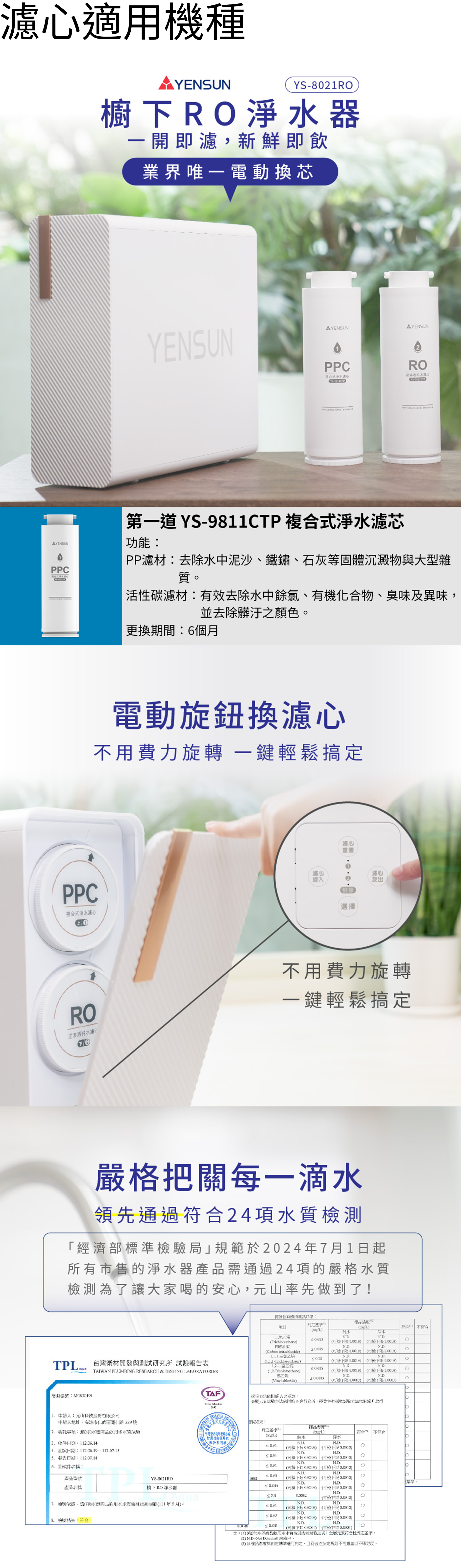 Yensun元山 YS-9811CTP 複合式淨水濾芯(YS-8021RO專用/第一道/6個月)